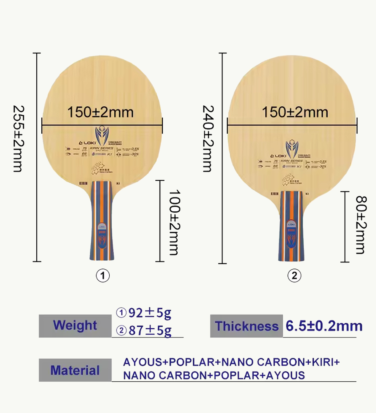 Long Handle:150±2mm*255±2mm, Short Handle:150±2mm*240±2mm |